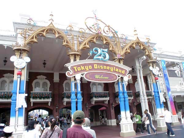 開業25周年を迎えたディズニーランドはお祝いムード一色。入り口の装飾がかわいかった。